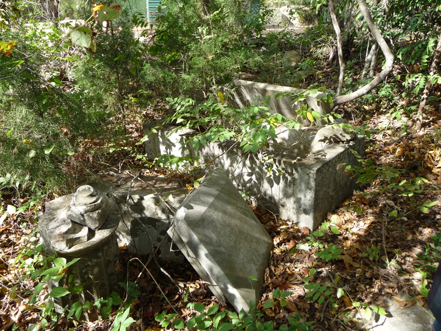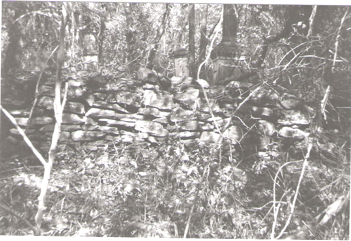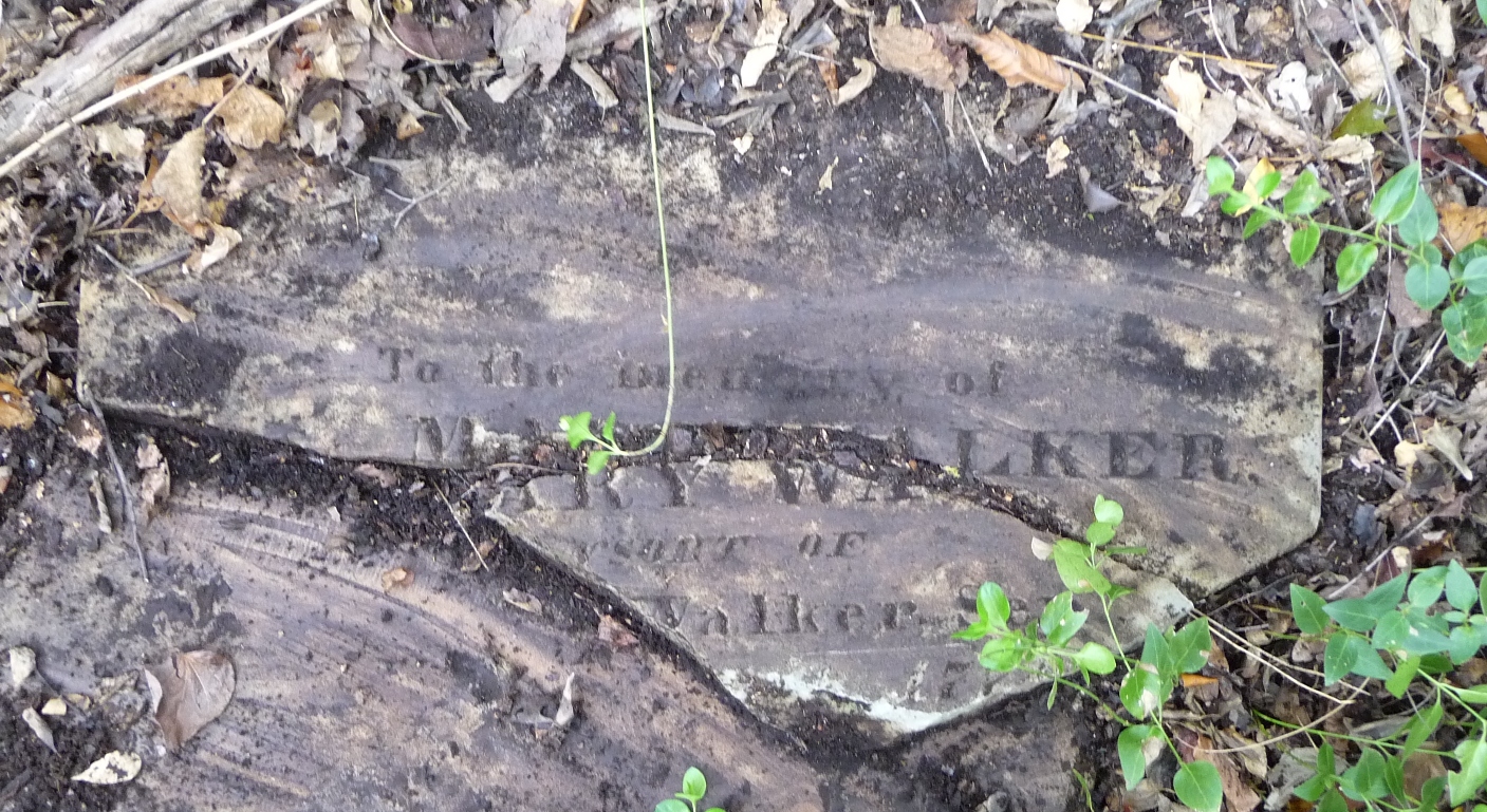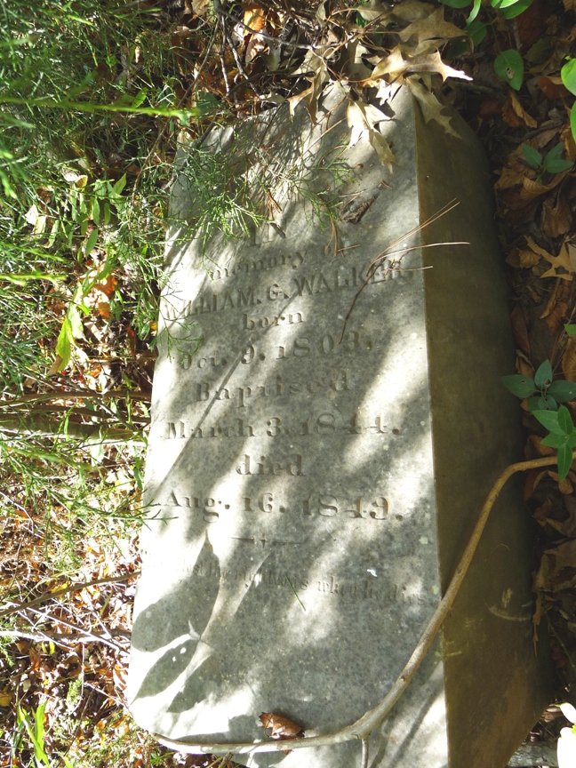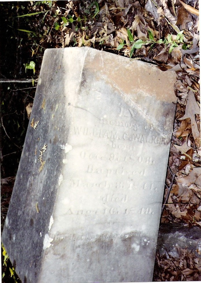 Walker Family Cemetery in Harris County Georgia Links back to the Walker Family page or to the Walker Plantation Houses page On the grounds of Rich Billy's plantation was the Walker Family Cemetery. It is a small cemetery, only about 12 identified graves (possibly a few unidentified). The cemetery is on private property, and is in a state of great disrepair. I have been given some photos of the cemetery from over the years, so I will post a few here. Note: Unless otherwise indicated, all photos on this page are courtesy of Abigail Dougherty. Find-a-Grave - I have also added the Walker Cemetery to the Find-a-Grave web site, posting relevant information and creating memorials for each person with an identified grave in the cemetery. I've also linked graves in this cemetery to the graves of family members (parents and offspring) in other cemeteries, where I have been able to locate them. From several hand-written drawings that were provided to me, I have created the following map of the grave locations in the Walker Family Cemetery. You can click here to get a full-screen copy. The History of Harris County by Barfield (ref 2, page 559) there is a listing of the graves in the cemetery (referred to as the William Walker Cemetery). In addition to those identified in the map, it mentions:
