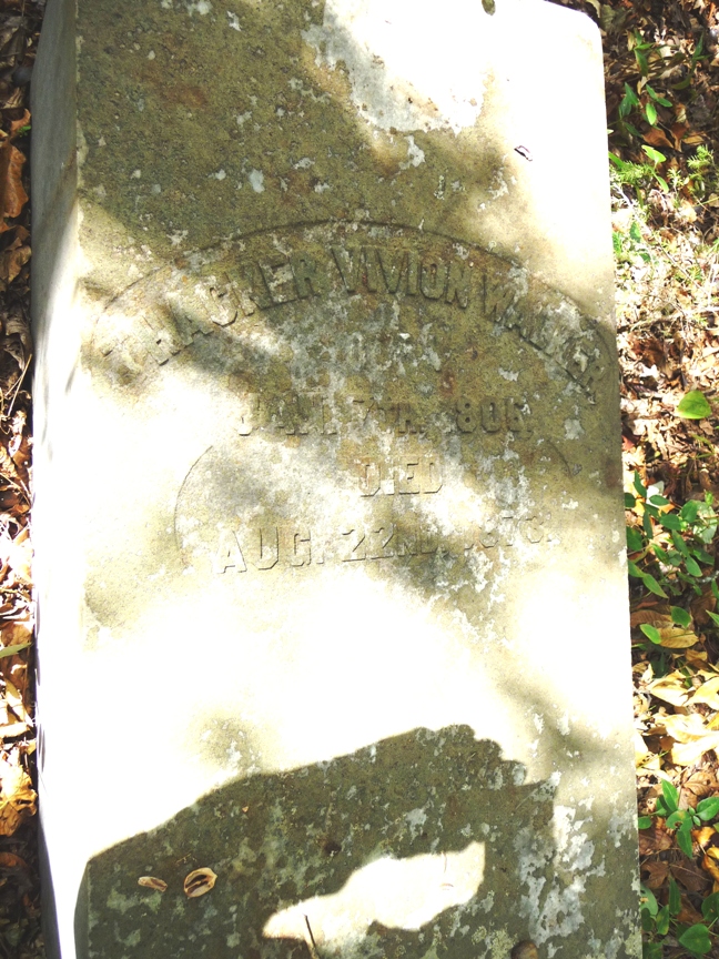 The Barfield book doesn't mention the Lula Phillips nor the Alexander Walker graves. It does, However, have listing for Graves in the Walker-Mitchell-McDougald Cemetery near Mulberry Grove, and in the Merriott Walker Family Lot in the Union Springs Cemetery in Union Springs, AL. There are relatives of Rich Billy in those cemeteries, so I will include those in notes at the bottom of this page. Here are some photos of the cemetery from over the years. Click on the photo for links. Circa 1963: Circa 2010: Mary Vivion Walker, wife of William "Rich Billy" Walker: Virgil Homer Walker, son of Rich Billy and Mary. Note the Mason marking. There a story behind this. Thacker Vivion Walker, son of Rich Billy and Mary. William G. Walker, son of Rich Billy and Mary: There are Walker graves scattered across Georgia, Alabama, and Texas (at least). While this page was focusing on the Walker Family Cemetery on Rich Billy's plantation, I will include a litle bit of information I pulled frm the Barfield book, since it was also referencing the Walker Family Cemetery (and the book can be hard to get if you don't live in the Harris County area). Merriott Walker Family Lot in the Union Springs Cemetery in Union Springs, AL. includes: